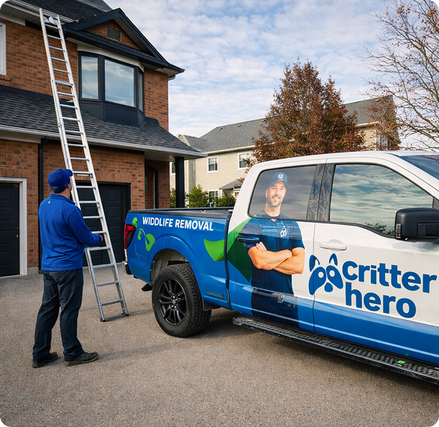 Wildlife in your attic, walls, or roof? Critter Hero provides humane wildlife removal in Hamilton, backed by 15+ years of experience in raccoon, squirrel, rat, bat, and bird removal. Our licensed and insured technicians use live trapping, one-way exclusion doors, and entry-point sealing to remove animals and prevent repeat infestations. Critter Hero follows a 100% poison-free approach, protecting homes, pets, and local wildlife. Book a detailed inspection for fast wildlife control and long-term prevention.